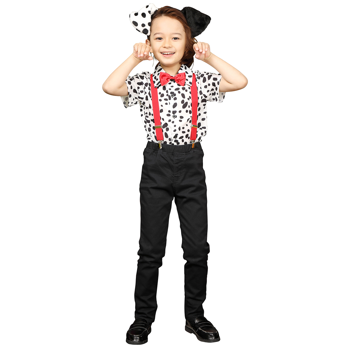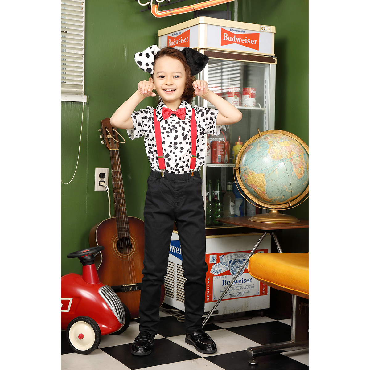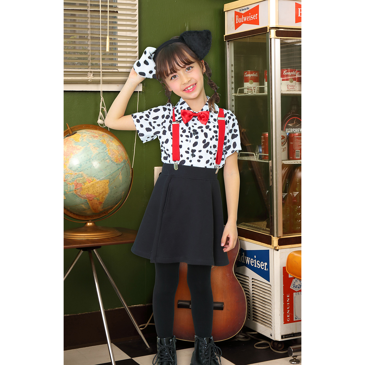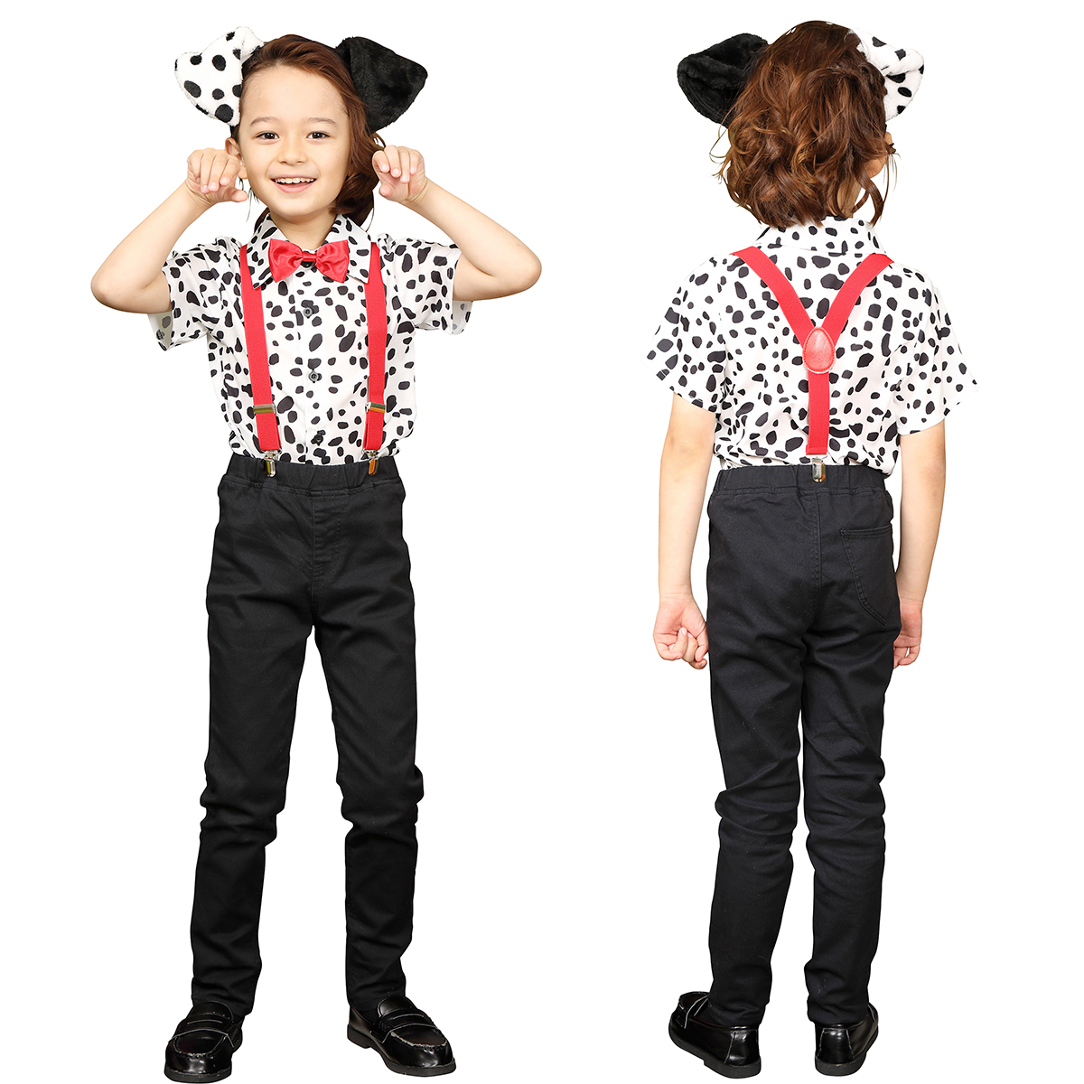 大麦町犬花纹的可爱扮装衬衫,搭配现有的裤子或裙子就OK,附吊带帮助衣服不易歪掉。
