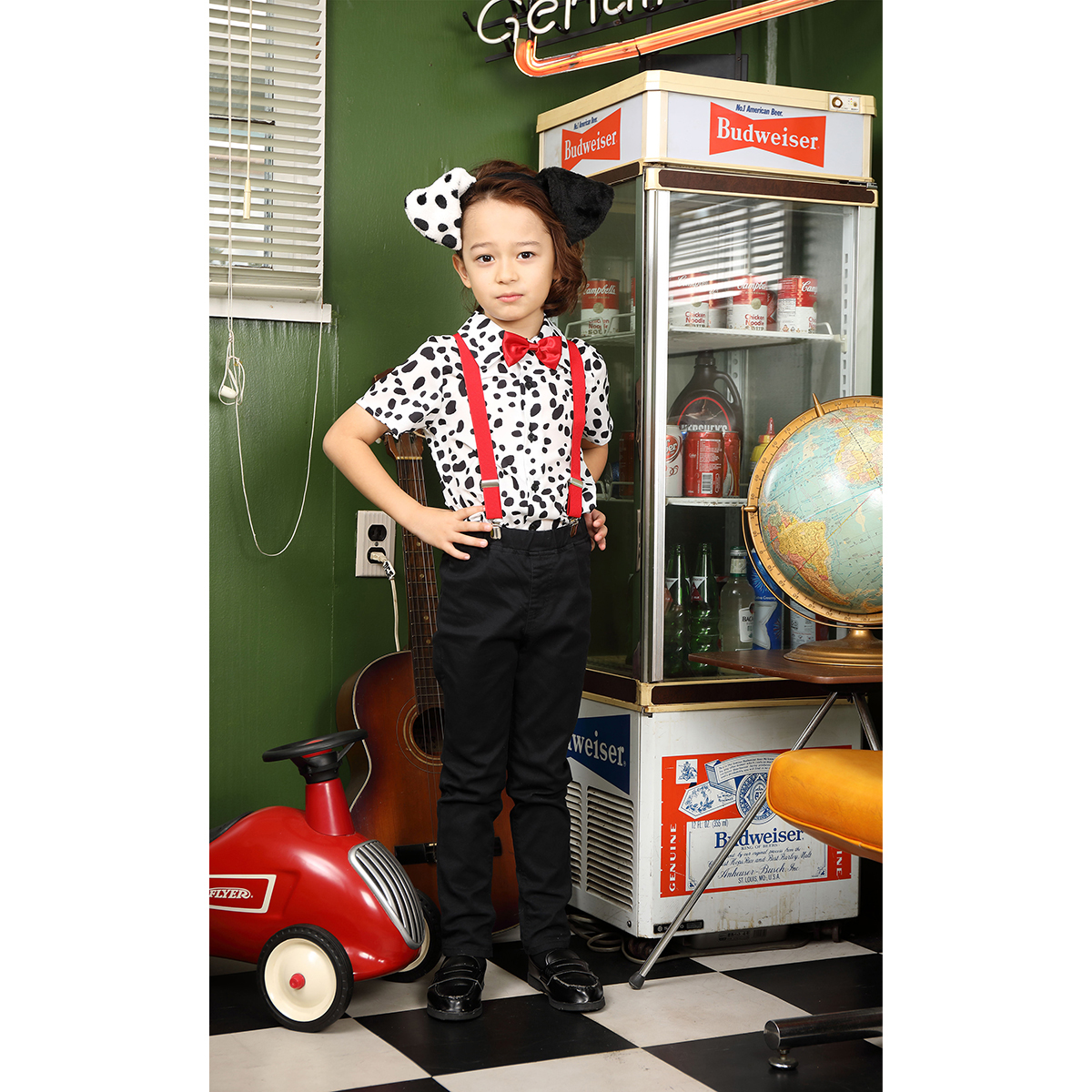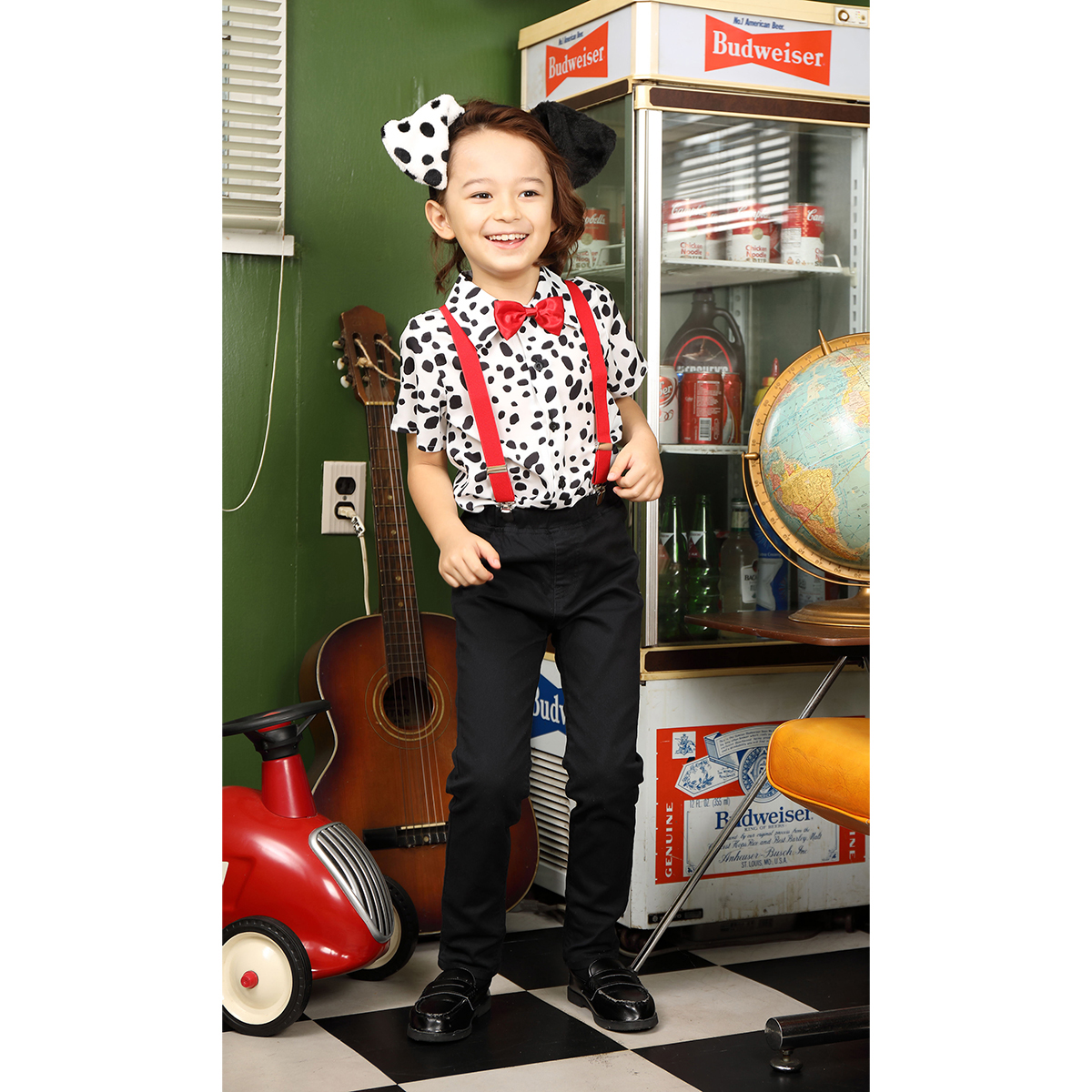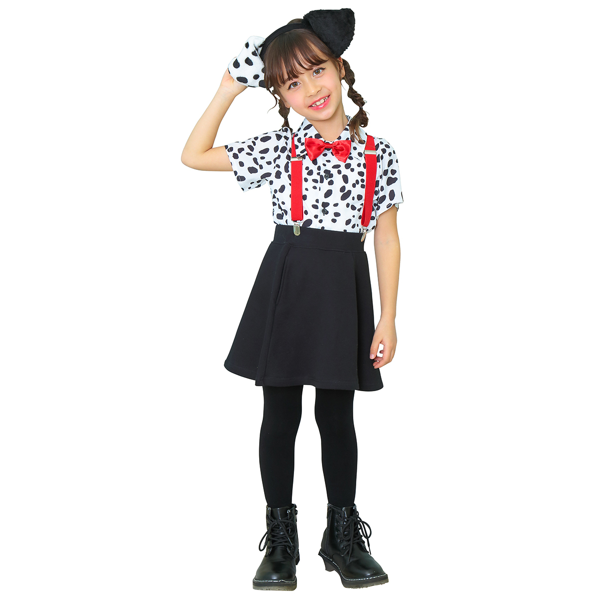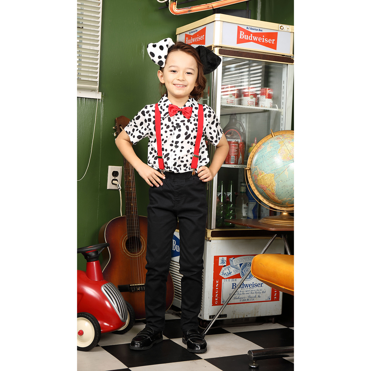 大麦町犬花纹的可爱扮装衬衫,搭配现有的裤子或裙子就OK,附吊带帮助衣服不易歪掉。
